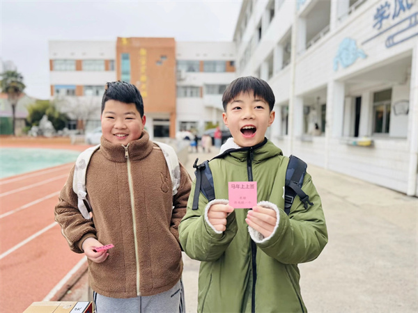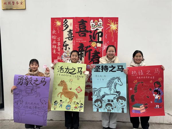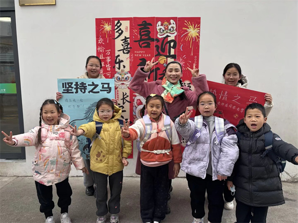 “‘马’字的诗词,谁能接下一句?”“操场一圈200米,跑3圈半是多少米?”“马为什么能站着睡觉?”……题目不多,却让思维在开学的第一天,轻轻转动。答对的同学,笑着从抽题筐中再取一支“马年上上签”,让智慧与好运,一同启程。孩子们三五成群,或凝神思考,或击掌庆贺,欢声笑语洒满校园的每一个角落。