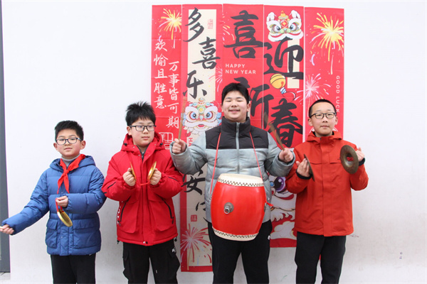 清晨的校门口,鼓声轻响,锣镲相和。孩子们以热烈而不喧闹的节奏,奏响春天的第一声问候,迎接每一位返校的同学。