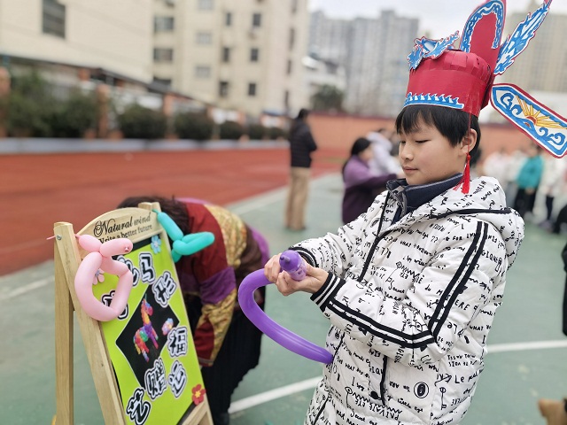 活动现场,大红流苏幕帘、“郊”傲戏园主题背景与小马气球相映成趣,处处洋溢着喜庆热烈的氛围。学生每完成一项学艺挑战,即可获得一枚传承印章,在仪式感中收获成就感与文化认同感。