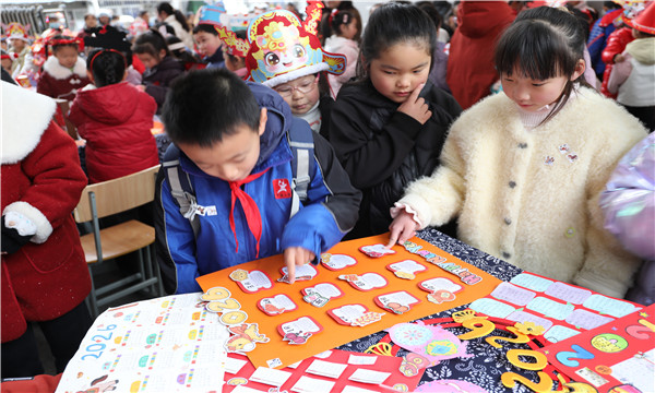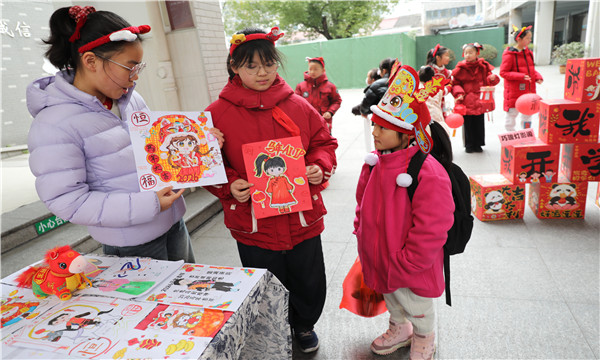 一年级“萌骏巧手坊”里,马年萌帽童趣盎然,解说卡细细诉说设计巧思与坚持创作的过程;二年级“暖骏剪纸廊”中,马年剪纸栩栩如生,“剪坏三次仍不放弃”的小故事打动人心;三年级“灵骏时光机”上,创意挂历标注着每日运动打卡等坚持目标,见证自律成长;四年级“巧骏灯影阁”里,精致花灯搭配制作影像,定格反复调试的专注瞬间;五年级“雅骏书韵轩”中,书法作品笔力遒劲,分享着长期练字的心得方法;六年级“慧骏未来馆”里,AI马年IP形象碰撞手绘创意,讲述科技与艺术融合的实践历程。
