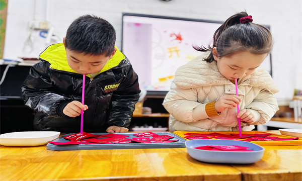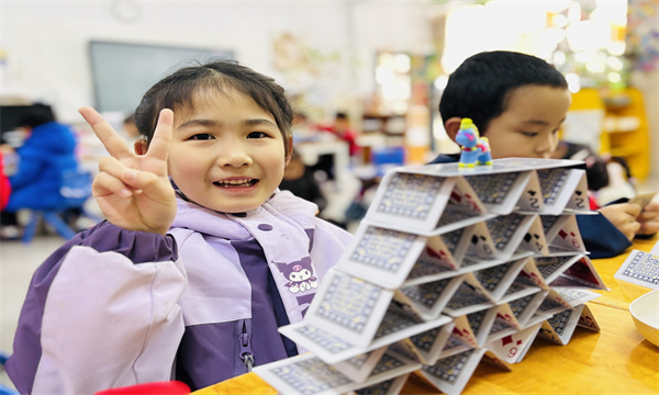 活动中,各班精心设计丰富游戏:“吸管吸福字”妙趣横生,“福气推推”欢乐赢奖,“小马攀登”纸牌塔挑战专注力,创意春日手工尽显童心。大班哥哥姐姐还为小班弟弟妹妹准备了亲手制作的小礼物,传递温暖祝福。