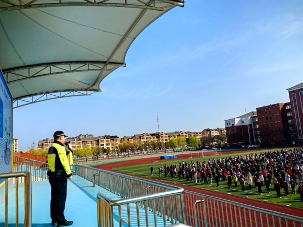 升旗仪式上,五星红旗冉冉升起,全体师生肃立致敬。随后,慈磊结合小学生出行特点,用通俗语言和真实案例,拆解过马路、乘公交等场景的安全隐患。慈磊的讲解贴合实际,引导学子牢记安全知识、远离危险,争做“文明交通小卫士”。