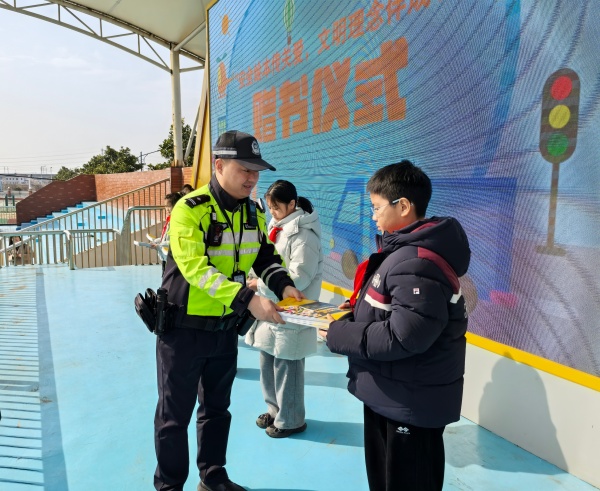 讲座尾声,是暖心赠书环节,慈磊特意为学生准备了图文并茂的交通安全绘本,一本本承载着安全期许的绘本,成为守护成长的“安全指南”。各年级学生代表有序上台,双手接过绘本,脸上洋溢着喜悦,在领取这份关爱与知识的同时,也默默扛起了“践行文明出行、传递安全理念”的责任。