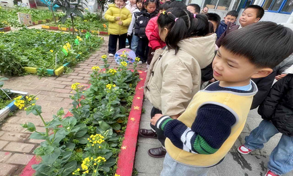 3月9日,在我园的种植园里,大三班的孩子们迎来了一次充满惊喜的自然发现,种植园里的菜心开出了金灿灿的小花。