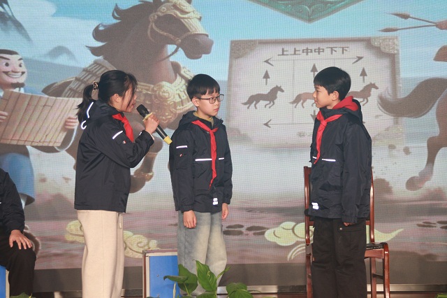 最受期待的学生戏曲成果展演环节,将庆典氛围推向高潮。六年级大哥哥大姐姐登场表演《田忌赛马》,韵味十足的呈现,完美展现了期末实践的丰硕成果,赢得了全场最热烈的掌声。