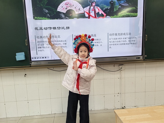 课堂以经典戏曲桥段为引,通过趣味互动体验,让孩子们在视听盛宴中初识戏曲的服饰、唱腔与身段之美,唤醒对传统艺术的好奇与向往。