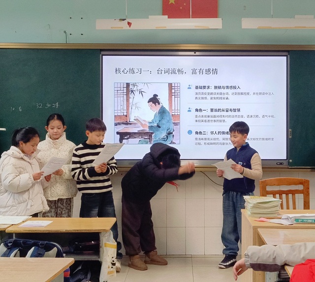 各小组明确“演员组”“道具组”分工,重点打磨台词流畅度、动作精准度与团队配合默契度,在反复练习中,让剧本故事逐渐鲜活起来。