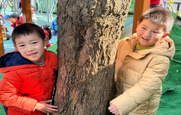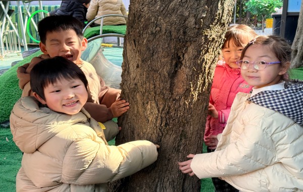 “老师,这棵大树的树干我一个人就能抱住!”“这棵树摸起来有点扎手,像爷爷的胡子!”在拥抱的过程中,孩子们七嘴八舌地分享着自己的发现。老师们则在一旁引导孩子们通过抱一抱、摸一摸、闻一闻,去感受每一棵树的独特生命。