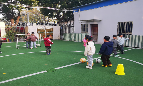 活动中孩子们精神饱满、积极参与。瞧,平衡木上,几个小身影张开双臂,锻炼着平衡与勇气;足球区,孩子们带球过障碍,一脚踢出美好瞬间;跳绳和拍球的孩子也不甘示弱,彩绳飞舞,皮球跳跃,欢笑声此起彼伏。老师们全程陪伴,耐心指导,鼓励幼儿大胆尝试、遵守规则、友好互助。
