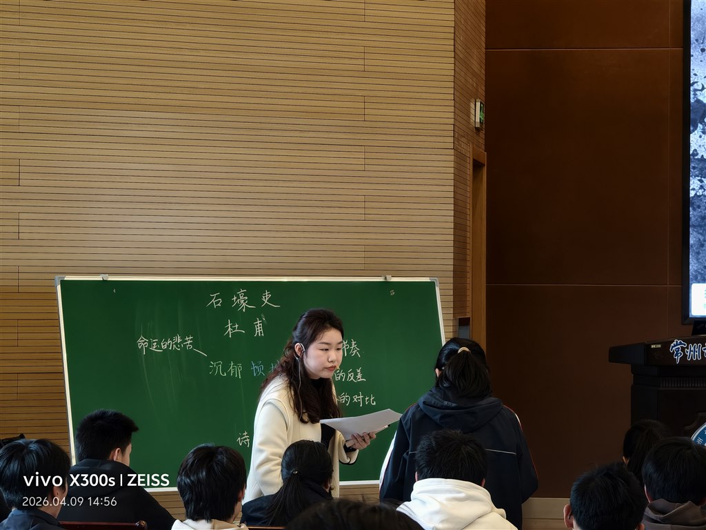 本次活动是省级课题《传统文化“活”起来:初中古诗文跨学科主题学习的实践研究》的重要深化环节,旨在通过同课异构的实践形式,探索经典文本的教学新范式。常州市天宁初级中学的胡雯婕老师和姜柏辰老师,围绕杜甫的经典诗篇《石壕吏》,分别进行了精彩的教学展示,为观课教师呈现了风格各异、深度与创意兼备的课堂实践。